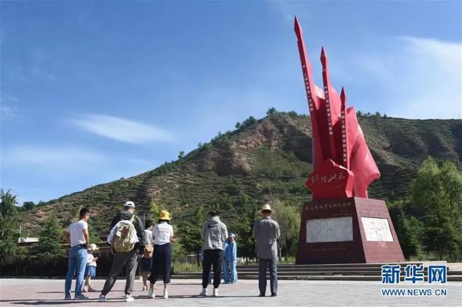 ▲8月16日,游客在哈达铺红军长征纪念碑前参观。新华社记者 罗晓光 摄
