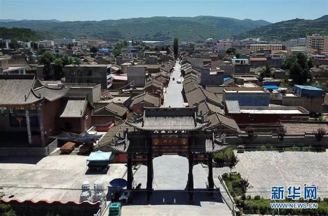 ▲在哈达铺镇拍摄的红军门和红军街(7月26日无人机拍摄)。新华社记者 马宁 摄