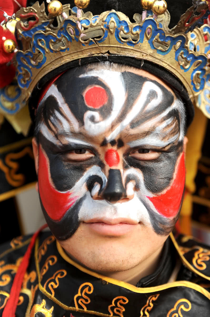 陇县社火属哑剧表演形式,表演过程中没有任何唱腔,观众只能从演员所画的脸谱上读懂扮演的角色。据资料显示,社火脸谱的颜色各有代表,其中黑代表忠诚、铁面无私,白代表奸诈,红代表侠义,绿代表草莽,金、银代表鬼怪,粉代表苍老,黄则代表残暴。民间艺人还专门编有口诀:“红为忠勇白为奸,黑为刚直灰勇敢;黄为猛烈草莽绿,蓝为侠野粉老年;金银二色色泽亮,专画妖魔鬼神判。”图为一名画好脸谱的演员。