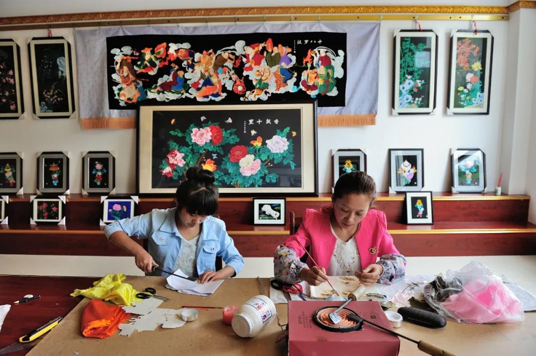 △艺人制作堆绣艺术品