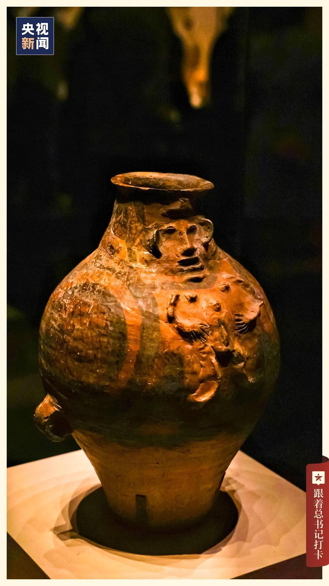 △青海海东市乐都区柳湾出土的裸体浮雕彩陶壶,现藏于中国国家博物馆。