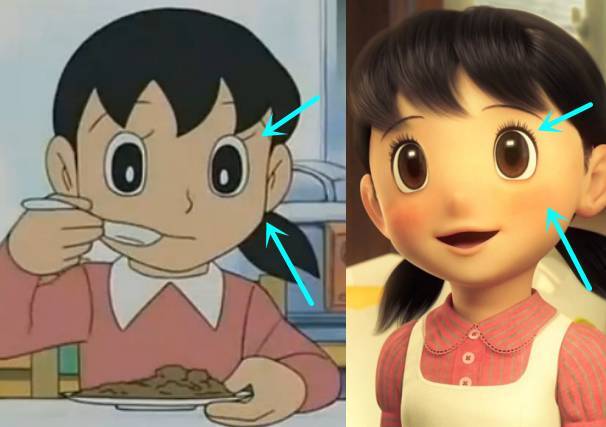 除了我们本土的动画片,霓虹国的经典动漫人物也在变。《哆啦A梦》里的大熊和小叮当面部不要太饱满~