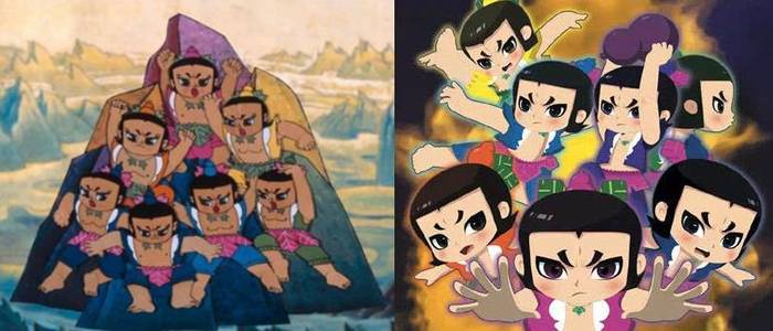 《葫芦娃》中的七兄弟各个也从面部扁平干瘪的小伙砸填充成了面部饱满的美少年,貌似还打了美白针,233333~