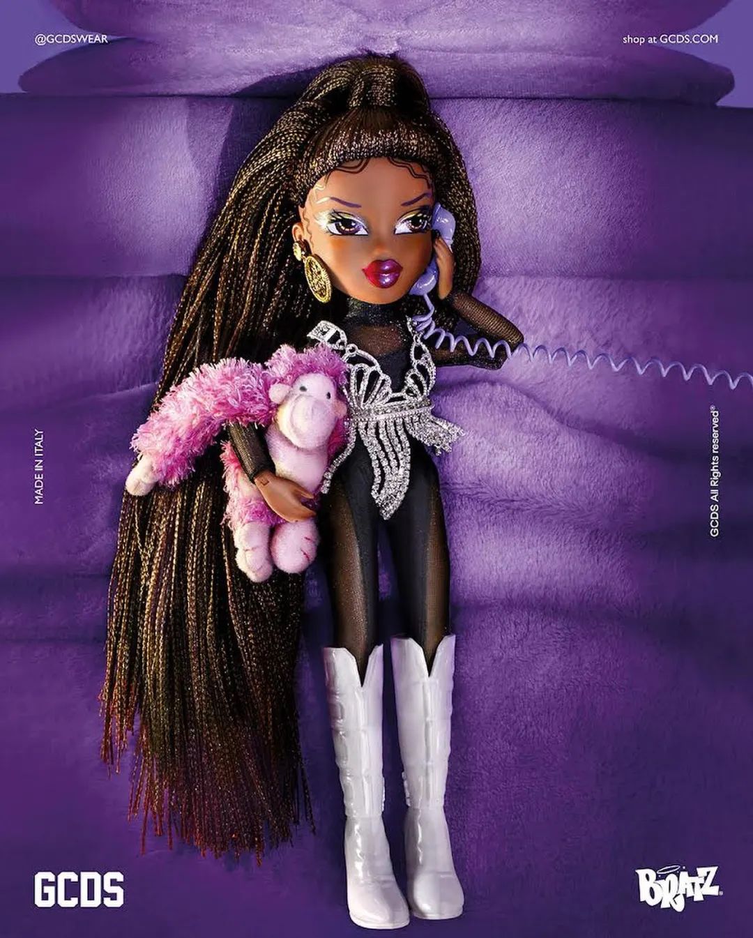 一把撇开芭比娃娃永恒的“九头身”焦虑,Bratz更像是你在城市街头会看见的三五一群的年轻辣妹。她们的体态不见得有多挺拔完美,却敢于尝试一切新奇前卫的东西,从妆容到穿搭都充满无法取代的躁动活力。