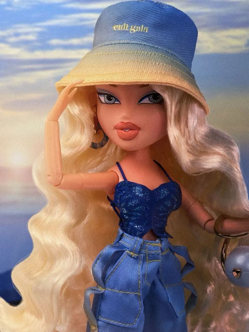 而主打辣妹度假穿搭的Cult Gaia则为Bratz设计了适合自由混搭的渔夫帽、露脐吊带、异形跟凉鞋……
