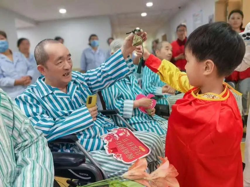 演出结束后,志愿者们将亲手缝制的艾草香囊逐一送到老人手中,草药清香与儿童节的欢悦气息在空气中交织。这场跨越代际的双节盛会,不仅让银发长者们在童趣互动中重拾少年心境,更让端午民俗在代际对话中焕发新生机。
