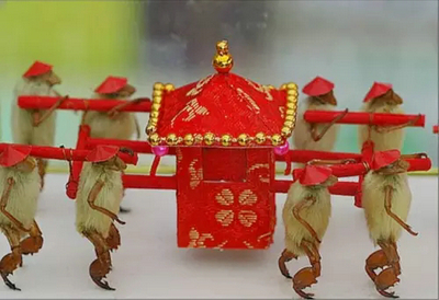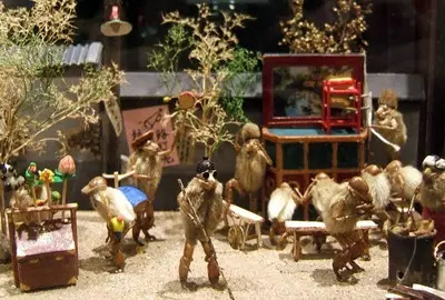 老手艺人说:“制作毛猴的时候,最难的不是制作毛猴本身,而是制作场景中的道具。因为毛猴本身很小,所以他们拿的、用的、吃的、玩的就更小,只有比例合适了,才会真实。”有的时候是连气儿都不能喘的,因为出一点气儿可能就会把它们全吹跑了。