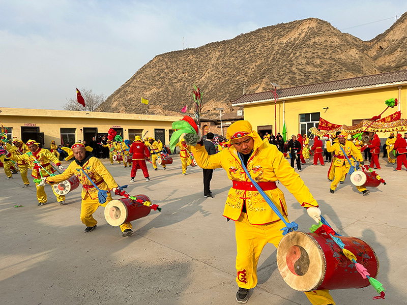 “咚咚锵,咚咚锵……”农历腊月二十,九合镇三坪村的广场上,浑厚的鼓乐、清脆的锣声,让年味分外浓郁。全村上百名社火队员正在师傅的指导下加紧排练节目,他们个个精神抖擞、神采飞扬,伴随着鼓点,“舞狮”翻滚、“秧歌”跳跃、划旱船、踩高跷,村子里一派热闹景象,展现着新农村的喜人变化。
