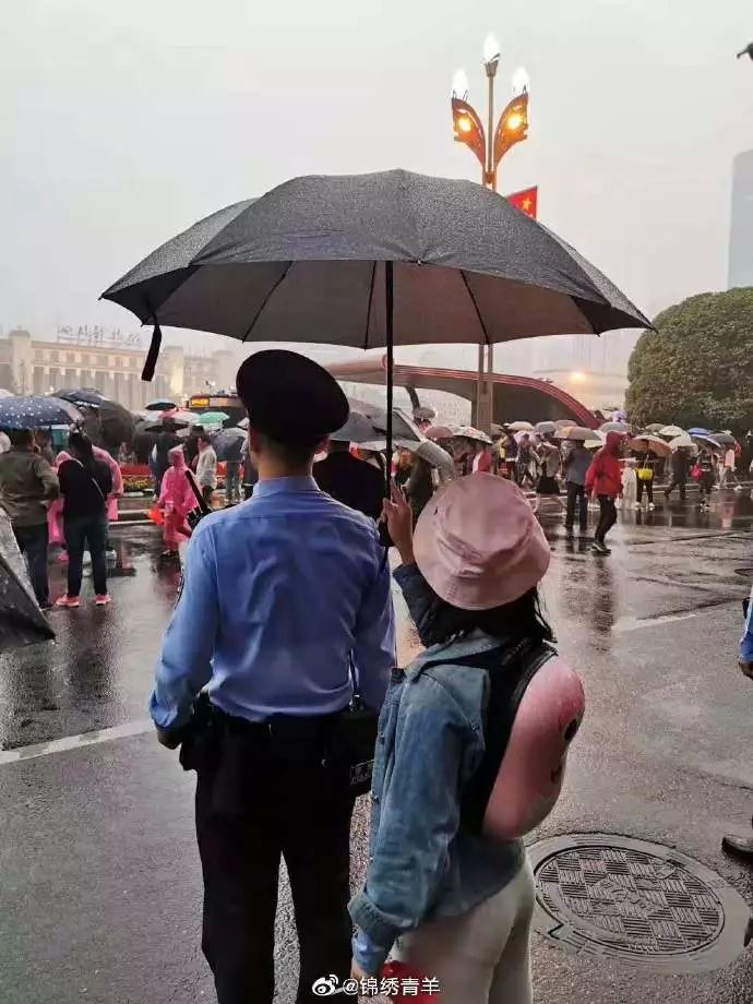 为风雨中的人民警察撑伞