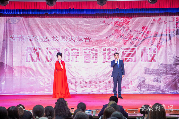 近日,由中共安徽省委宣传部、安徽省教育厅、安徽省文化和旅游厅联合举办的2024年“校园大舞台 徽风皖韵进高校”活动在阜阳师范大学西湖校区景行楼举行。学校党委宣传部、学校团委等单位负责人及各学院师生代表共同参加了本次活动。