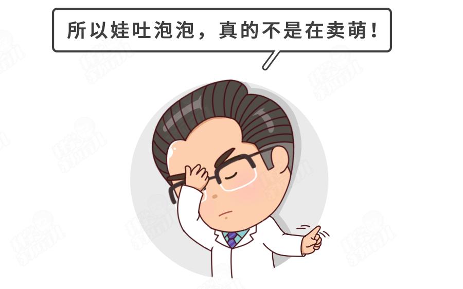 因为小宝宝气管短窄,还不会咳嗽,就以吐泡泡的形式代替了咳嗽。