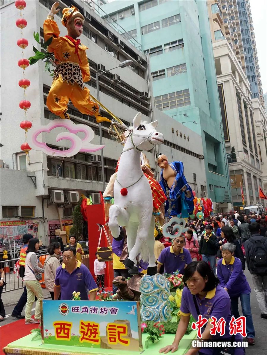 2014年3月,香港第十届大角咀庙会热闹开幕,举办大型巡游汇演。洪少葵 摄