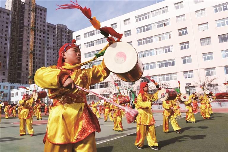 皋兰县社火排练正酣 太平鼓敲出“年味”