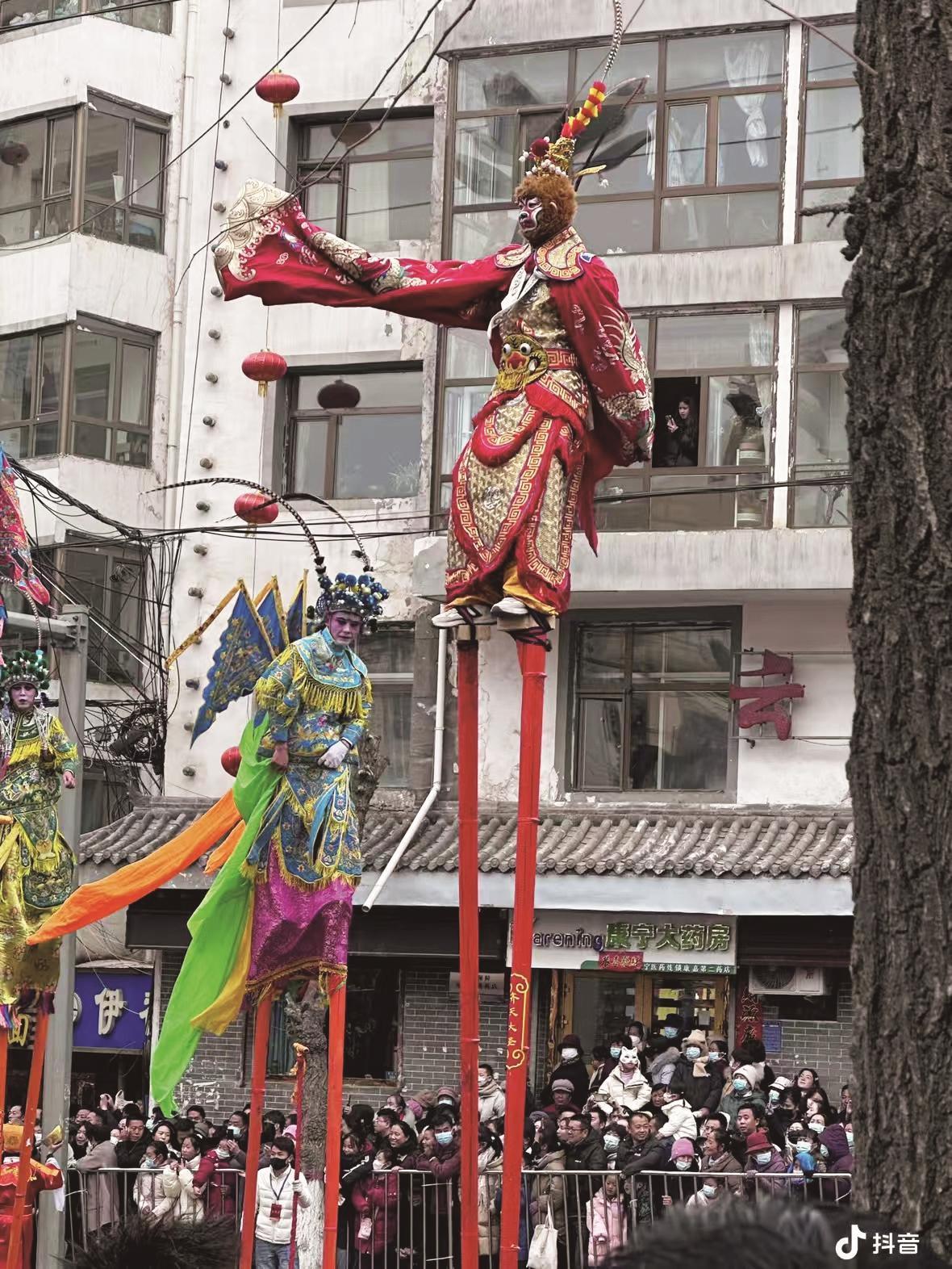 “有小朋友专门跟我合影,还有人举着手机拍视频跟我们打招呼。”“有人会特意赶过来看我们表演,还有人将我们的视频制作成短片发布在网上。”回想起这个春节的演出过程,5位高跷扮演者有说不完的话,精彩的对话吸引了众多网友驻足直播间。
