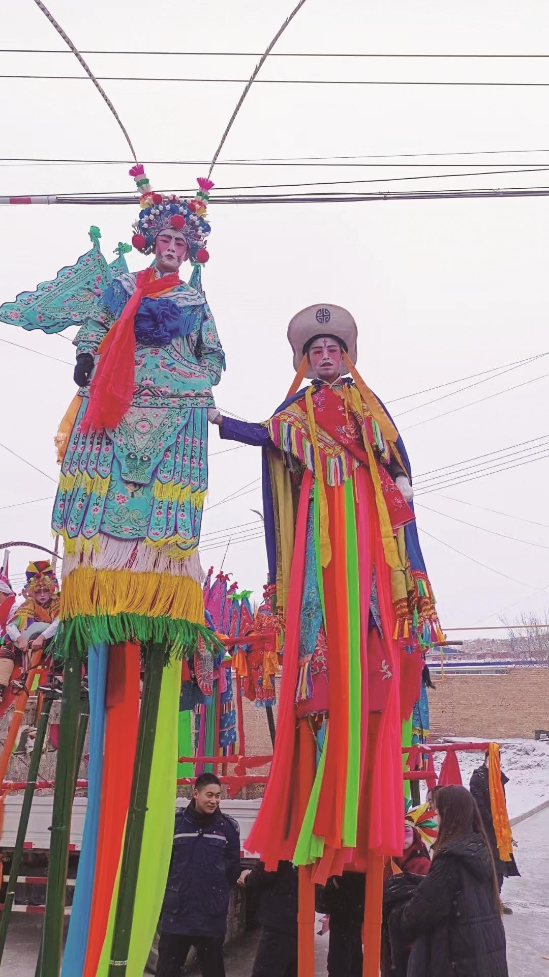 耿生朝、王文李也是从小就喜欢高跷,从小跟着家人学习踩高跷,渐渐从看表演的人变成了传承人。3年、4年、6年、10年……他们每个人加入社火高跷队的时间都不一样,但不论时间长短,大家对高跷的热爱却始终如一。