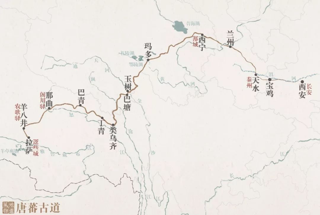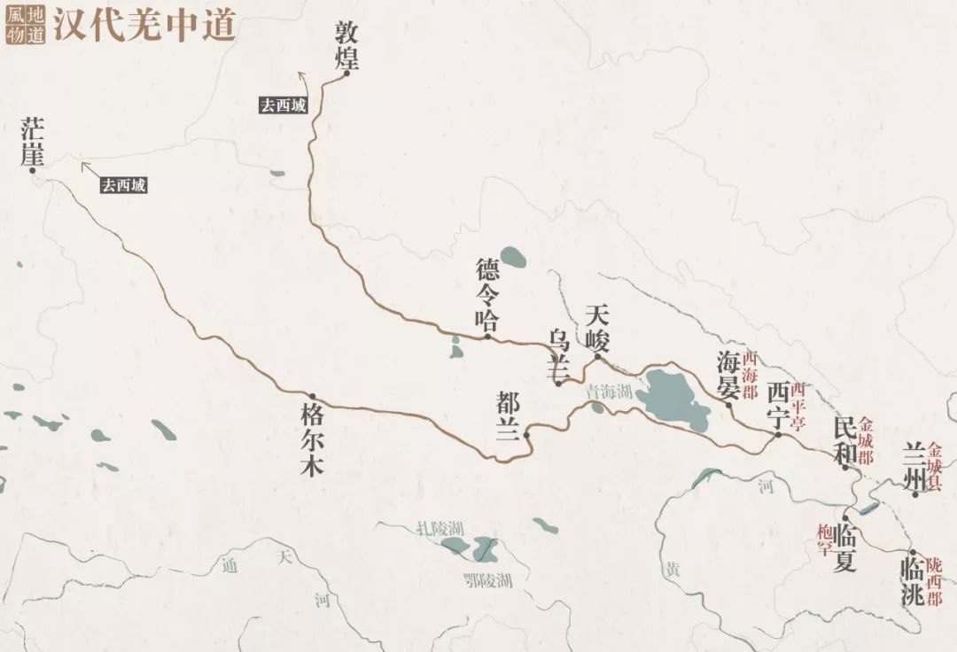 丝绸之路东段南线从长安出发,经今兰州、西宁西进,或北上张掖,或继续向西穿越柴达木盆地,进而沟通西域;汉羌中道则是取类似线路,途经西宁后分为以青海湖为界的南北两线,分别自敦煌、茫崖通向西域;及至唐朝,吐蕃兴起于西藏,并向青海扩张,唐、吐蕃的交流与冲突,促成了唐蕃道的开通。自长安出发,取道兰州、西宁,途经青海湖南下,越过巴颜喀拉山、通天河长途跋涉到达拉萨。这条古道至今依然是重要的入藏线路之一(青藏公路)。