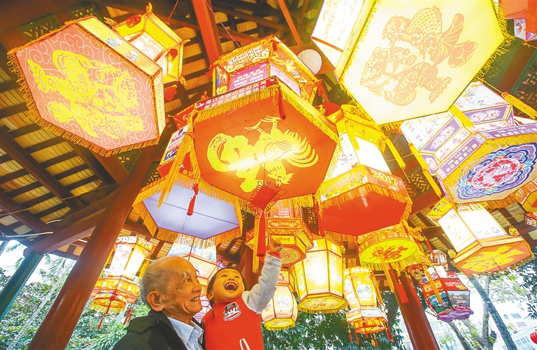 每年元宵节,海口市琼山区府城的传统花灯展,总能吸引不少市民和游客驻足观赏。海南日报记者 张茂 摄