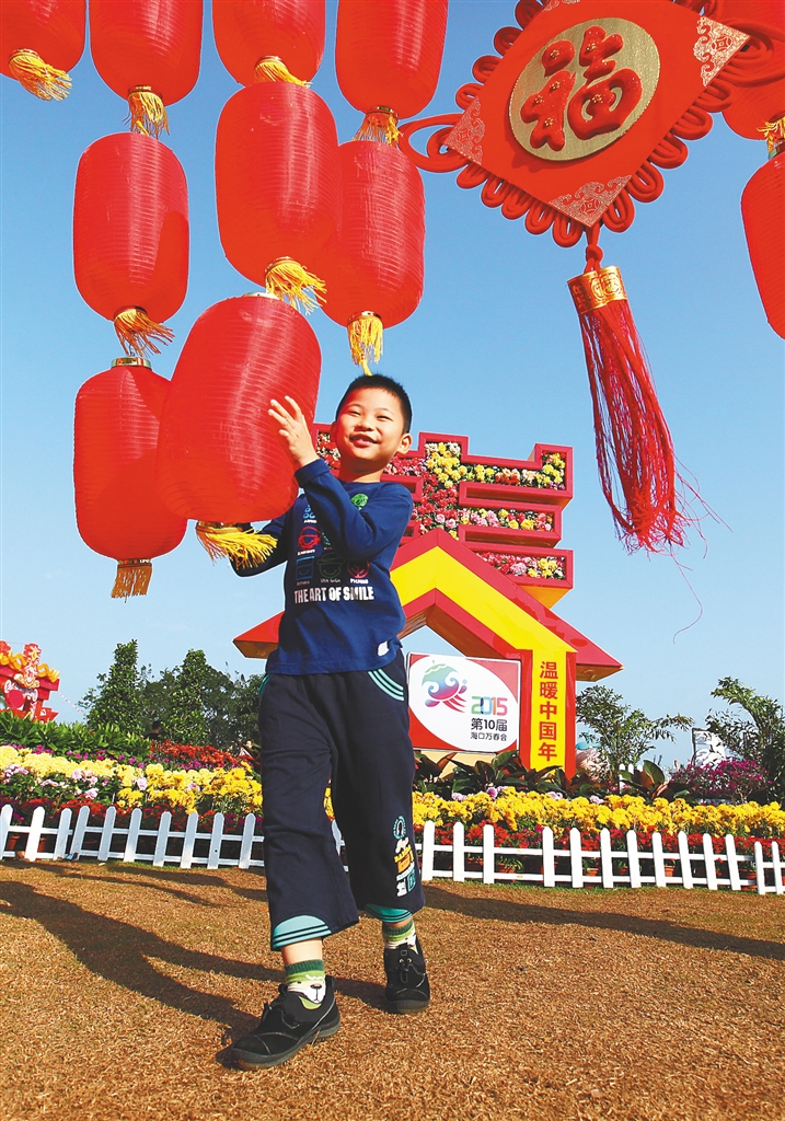 春节长假,年味浓浓,灯彩熠熠,海天火红。