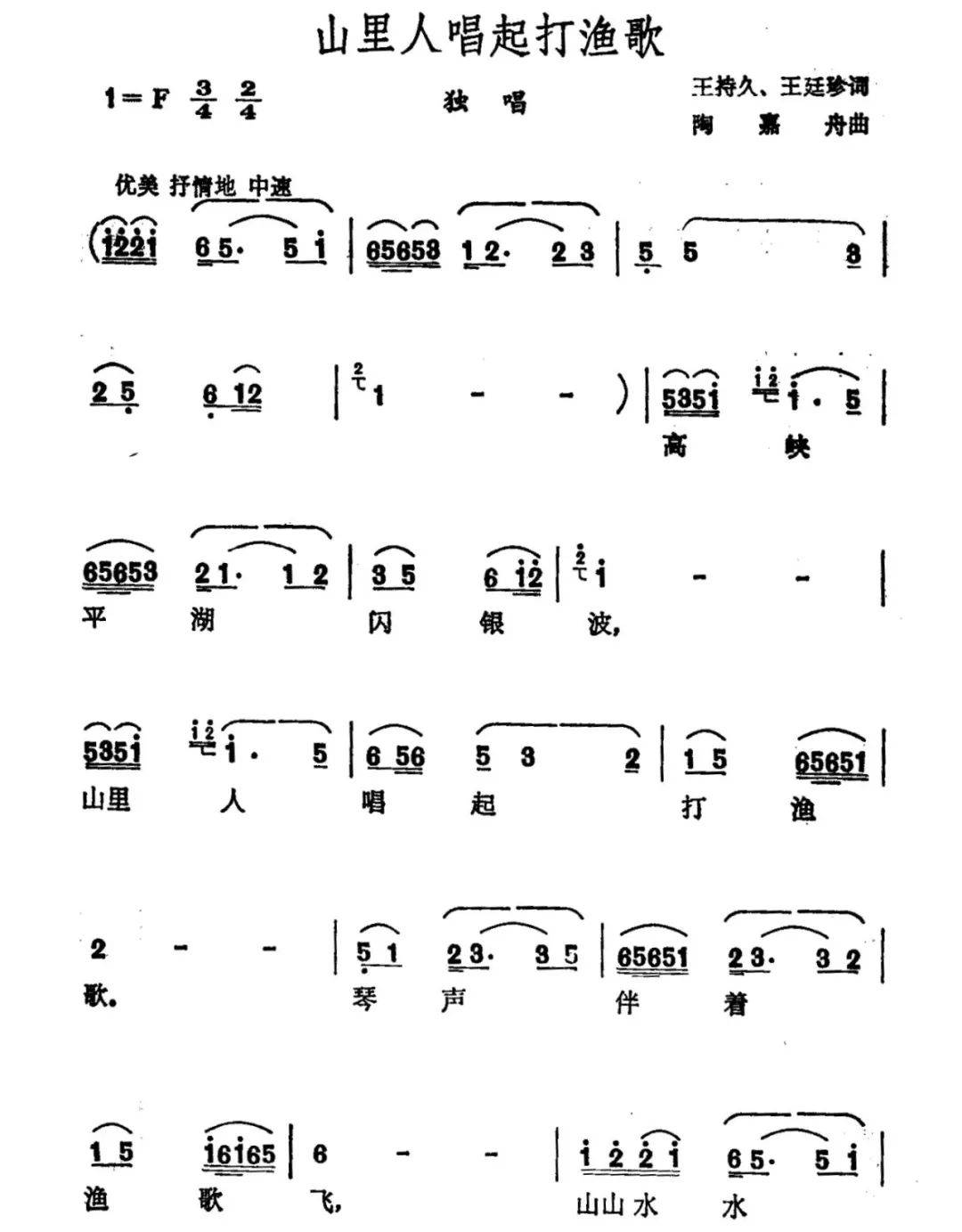 “高峡平湖闪银波/山里人唱起打渔歌……”1977年底,王持久在上海《工农兵歌曲》上发表了与他人合作的《山里人唱起打渔歌》的歌词。该歌词因紧扣时代脉搏而被多名作曲家竞相谱曲,歌曲发表在《上海歌声》和《音乐世界》,其中由郭万春谱曲的《山里人唱起打渔歌》,于1980年被四川省群众艺术馆和四川电视台纳入其联合主办的《蜀乡新声》音乐会。