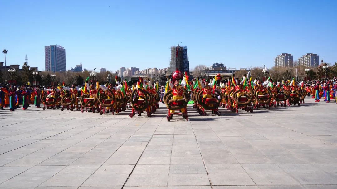 此次调演共有6县区2000余名社火表演者,正式演出开始前,各县区代表队带着新春的问候和祝福整装齐聚,沿军分区十字、南环路、南大街、鼓楼、西大街、县府街路段进行巡游,一同向全市人民拜年。