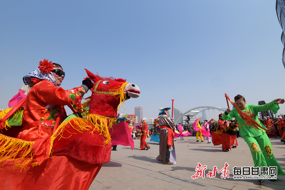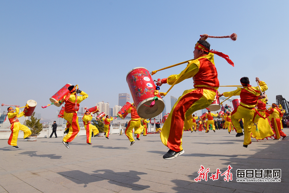 兰州太平鼓响起来,永登苦水高高跷走起来……今日11时开始到13时,在兰州市城关区金城关文化博览园广场及兰州市水车博览园,来自兰州市部分县区的社火队纷纷亮出了“拿手戏”,和围观的市民们一起“闹”元宵节。
