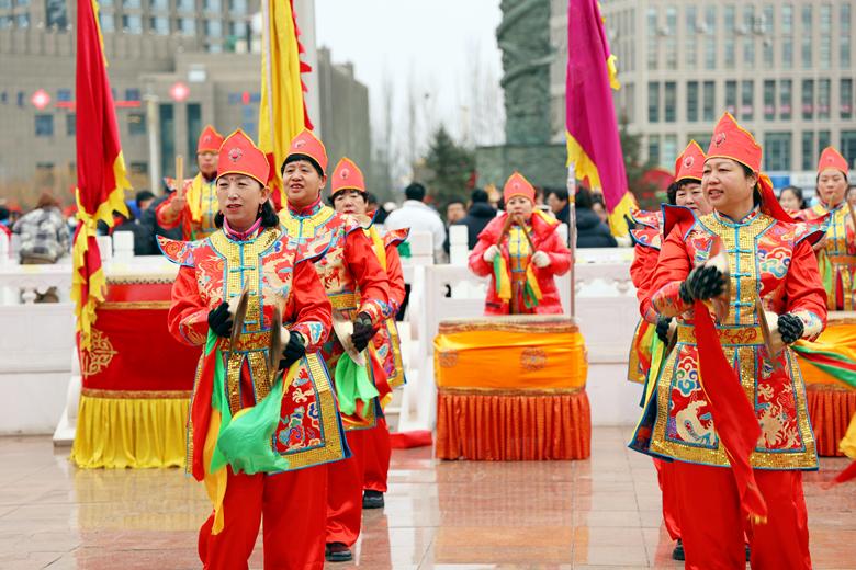 舞龙舞狮扭秧歌,敲锣打鼓闹新春。来自新城区保合少镇、8个街道办事处和3个区域服务中心的12支社火文艺队伍早早在广场集结。