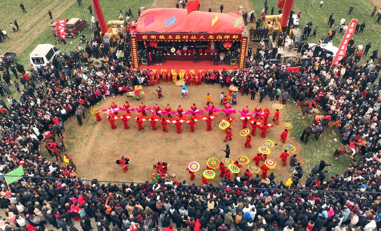 三秦都市报-三秦网讯(记者 李永利 马昭)2月18日,蓝田县前卫镇20个村社的社火表演队相聚在王庄村,以喧天锣鼓、旱船、秧歌、舞龙等形式,展开了一场对美好生活憧憬和向往的狂欢,祈愿新的一年里风调雨顺,五谷丰登,吉祥如意,国泰民安。