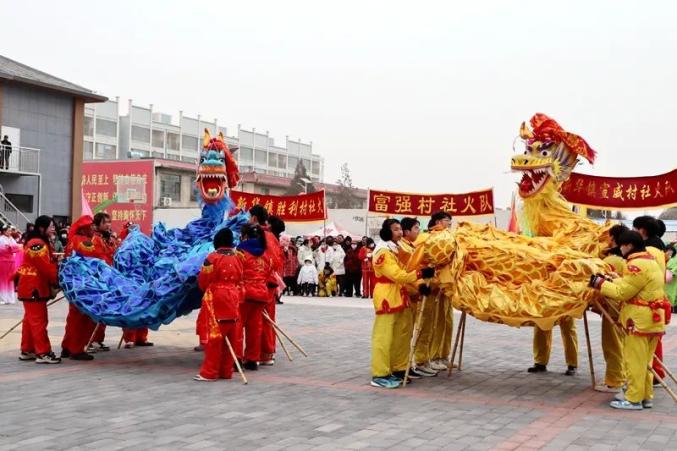 广场上,伴随着锣鼓铿锵有力的节奏,富强村、胜利村、社火队、宣威村社火队的表演队员们踩着鼓点、神采奕奕阔步向前,翻腾跳跃的舞龙、憨态可掬的大头和尚、威风凛凛的太平鼓,让现场群众不时为之喝彩叫好。浓浓的年味儿扑面而来,处处弥漫着欢乐、祥和的氛围,现场观众纷纷拿出手机记录这一喜庆的时刻,欢笑声不绝于耳。
