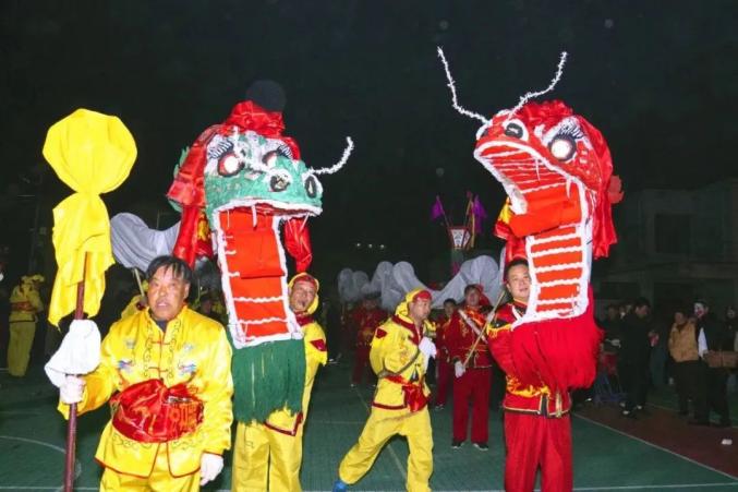 表演结束后,表演者们在锣鼓声和村民的簇拥下,一边舞蹈,一边歌唱,绕村表演,以此来表达龙年吉庆祥和的喜悦之情。