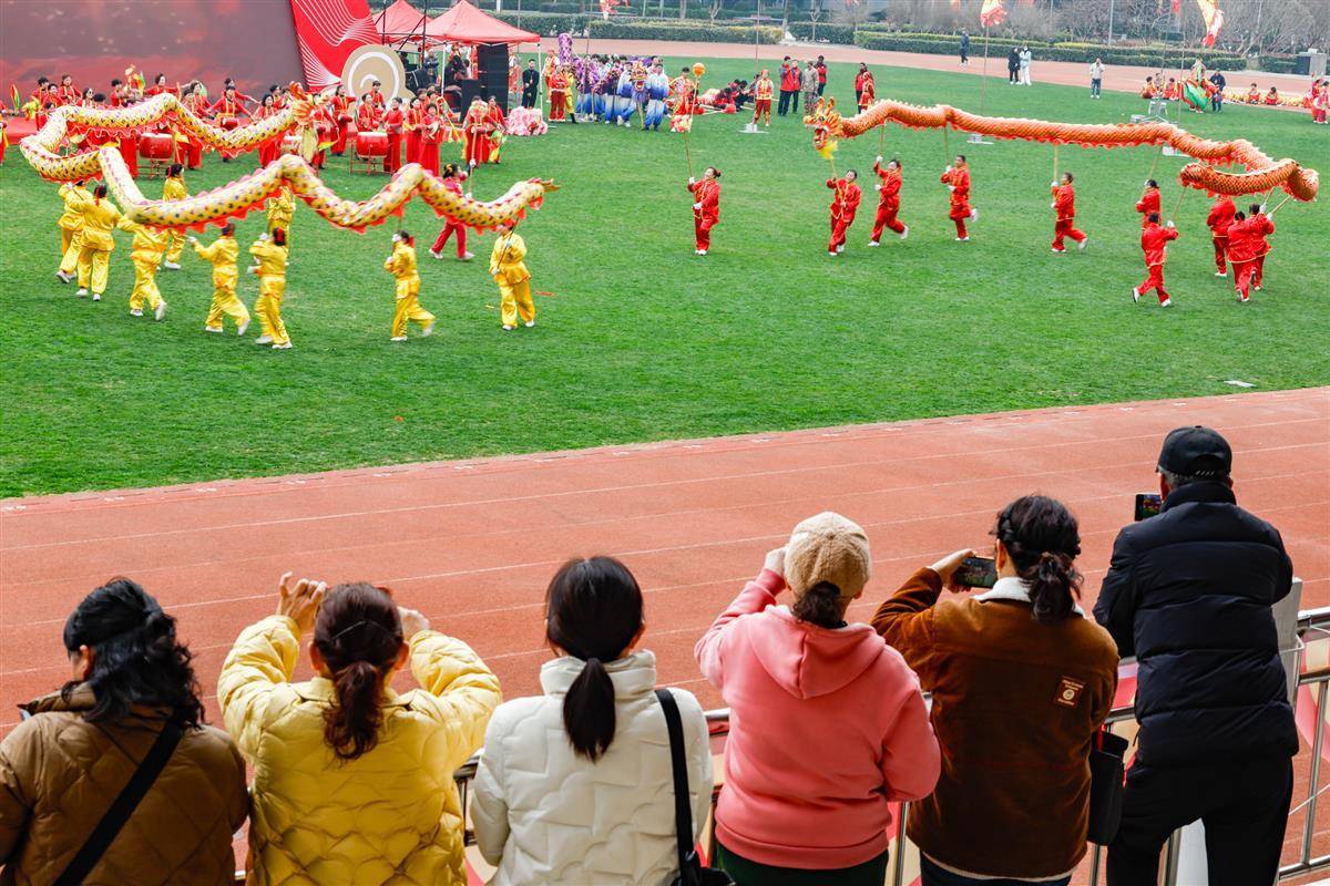 2024年2月19日,武汉市硚口区“龙行龘龘腾飞硚口”新春舞龙大赛暨民俗展演活动在武汉市第一职业教育中心体育场举行,来自该区11个街道的25支舞龙队,上演舞龙大秀,同时还有“采莲船”,蚌壳精、大头娃娃等民俗表演与观众现场互动,热闹非凡。
