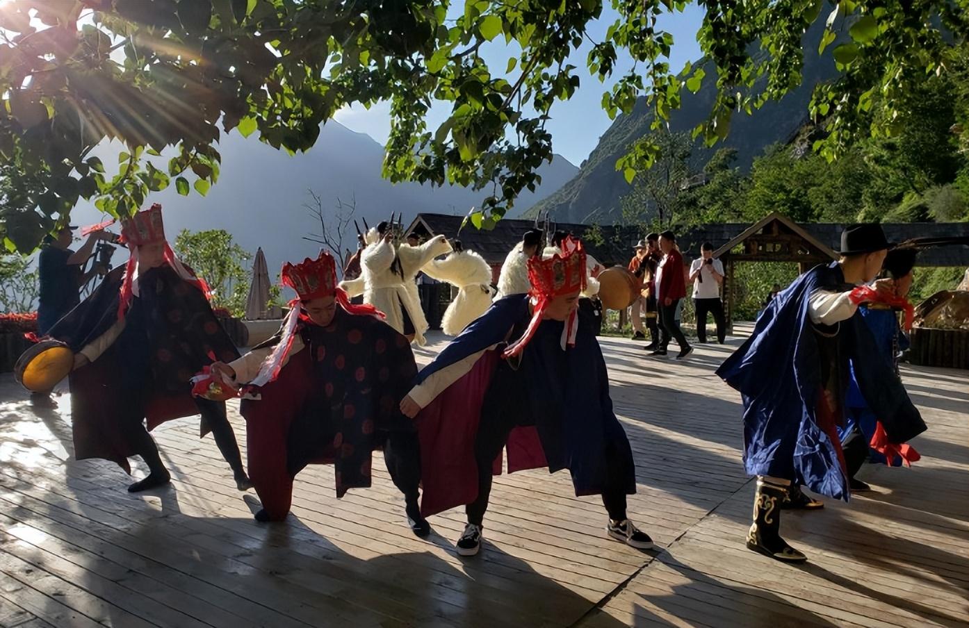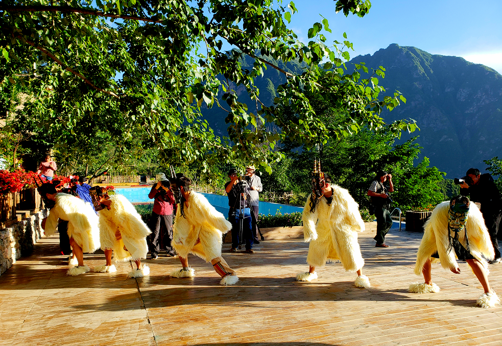 在文县铁楼乡,白马藏族用跳“池哥昼”来迎接新年,各村有自己规定的时间和特定的表演人员,正月十三从麦贡山开始,小村寨跳一天,大村寨跳两天,由东向西顺接表演,直到正月十七草坡山跳完,白马人的“池哥昼”才算结束。