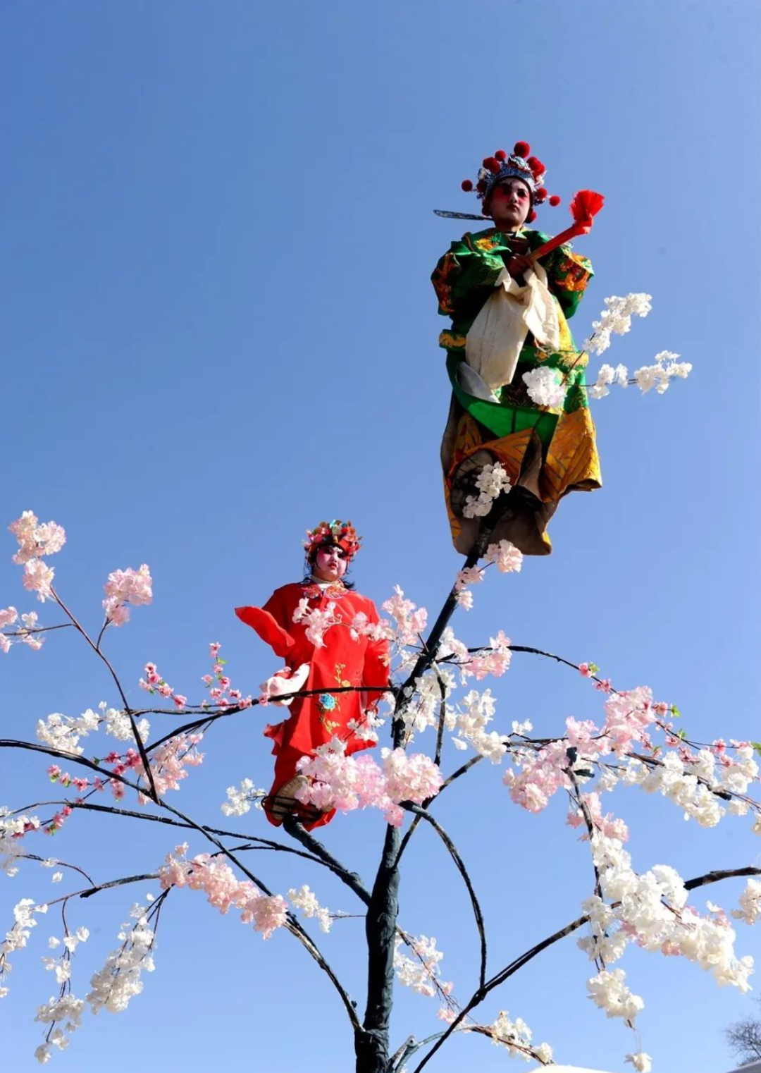 高台又叫高架,耍高台是礼县春节文化活动中最具特色的社火艺术,其中礼县红河镇高台以高、险、奇、巧、秀著称。一架高台一般表现一部戏剧或一个神话故事的某一情节,其思想内容大多表现祥瑞、爱情和美好愿望。如“天官赐福”“金榜题名”“天女散花”“刘海撒钱”“嫦娥奔月”等。