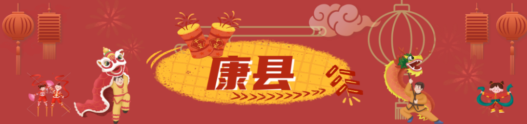 每年春节,康县各村群众便会自发组织传统社火表演。在阵阵锣鼓声中,表演队员们身着艳丽彩装,精神抖擞,神采飞扬,踏着鼓点,以秧歌队、旱船、舞龙、西游记人物、舞狮等形式多样的表演表达对幸福生活的热爱与赞美,为新年增添了节日的浓厚氛围,处处洋溢着一片欢乐祥和。