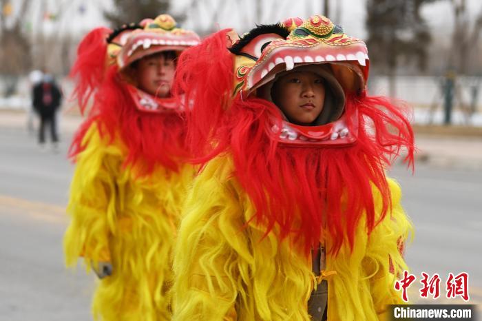 图为永登社火展演中的舞狮孩童。李亚龙 摄