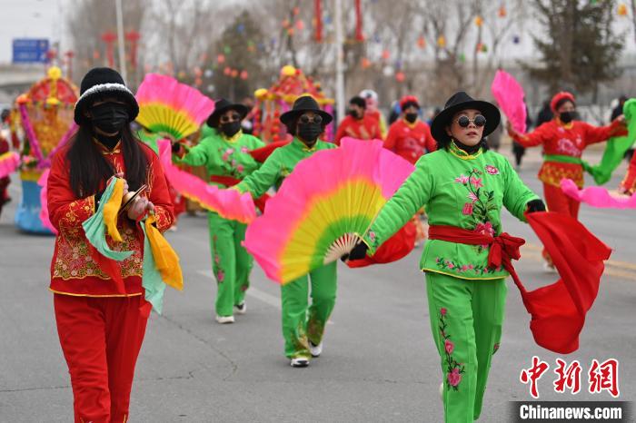 2月21日,甘肃省兰州市永登县举行2024年“陇原儿女心向党 龙腾鼓舞贺新春”社火进城展演活动,有十多支社火队两千多名当地民众参加了展演。社火展演包括源自西域流传2000多年的当地独有非遗硬狮子,也有传统非遗兰州太平鼓,还有永登高跷、高高跷及亭子等特色绝活。