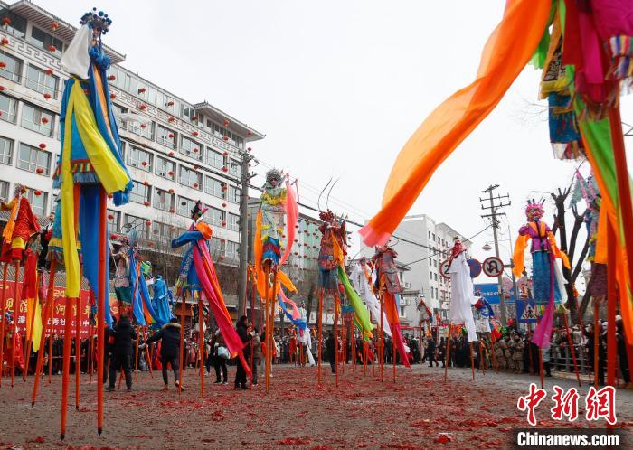 图为青海省西宁市湟中区鲁沙尔高跷表演。 马铭言 摄