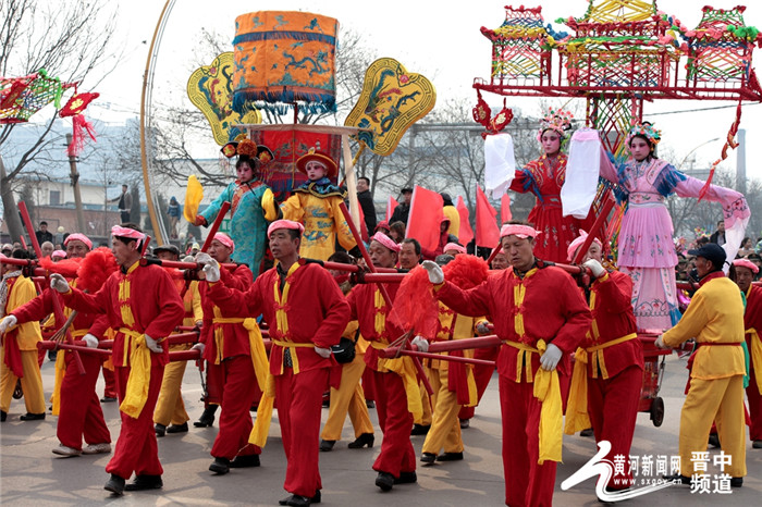 太谷区元宵节街头社火展演有着数百年的历史和深厚的文化内涵以及浓郁的地方特色。今年太谷区元宵节民间社火展演活动以“增强文化自信,传承传统文化”为宗旨,为群众带来一场喜庆、丰盛的民俗盛宴。活动设置观礼台3个,表演内容涵盖威风锣鼓、冷焰火、五彩烟、礼炮、舞蹈、铁棍、挖棍、背棍、武术、秧歌、龙狮起舞、大头娃娃、旱船、灯马、人偶等80个节目,参演人员7168人,表演时间长度为225分钟。(孙泰雁)