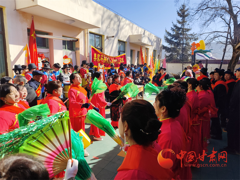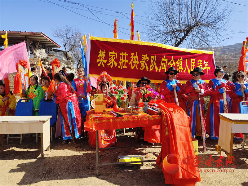 中国甘肃网2月16日讯(西北角·中国甘肃网记者 狄东阳)“天气不早,请老爷上马!”2月16日(正月初七),随着春节秧歌队领队衙役的一声呼威,2024年武山县滩歌镇樊庄村的秧歌表演正式拉开帷幕。