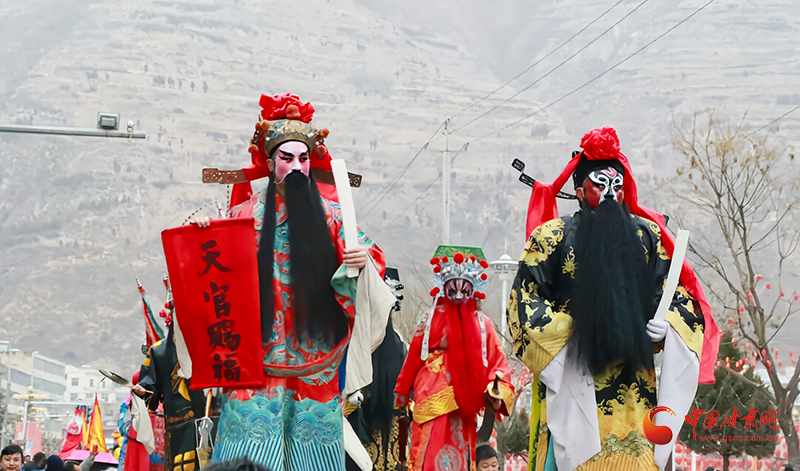 2月21日,在宕昌县城区街道、时代广场,当地举行了贺新春社火进城展演活动。来自两河口镇的社火队为当地群众献上精彩的演出。
