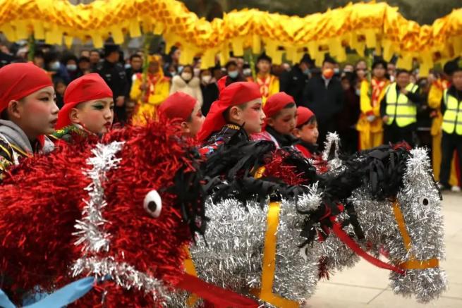 欢腾的舞龙舞狮、滑动的旱船、古老的踩高跷、热情的秧歌……伴随着欢天喜地的锣鼓声,身着盛装的社火表演队员们个个精神抖擞,你方唱罢我登场,踏着鼓点尽情表演,为广大群众演绎了一场民俗盛宴。