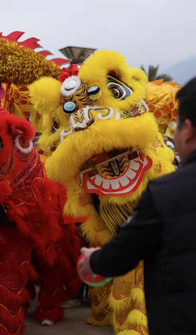 狮舞龙腾歌盛世,乡村社火拜大年。