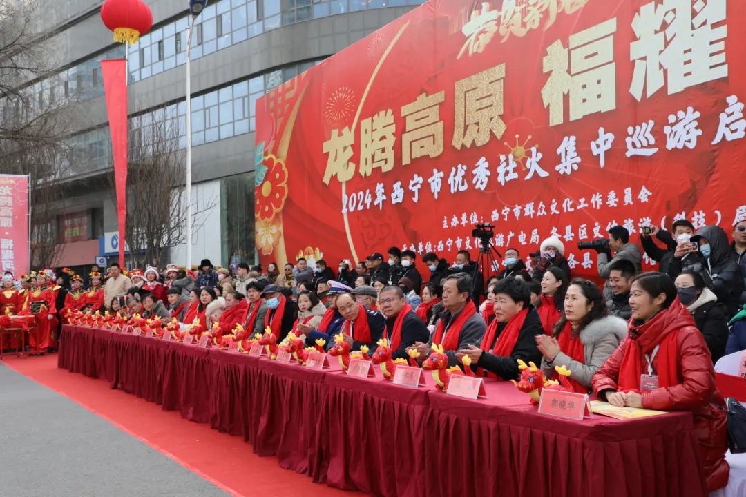 启动仪式上,《锣鼓喧天贺新春》、《龙狮大拜年》、《祥龙献瑞耀河湟》等精彩节目相继上演,全国全省劳模、“西宁好人”代表为龙狮点睛搭红、为社火领队搭红。