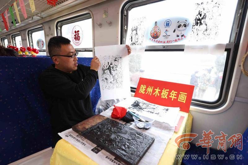 “现在外面一‘墩’难求,没想到在慢火车上竟然看到了精美的手绘“冰墩墩”,真是意外之喜。”坐车陪家人去陇县看社火表演的56岁马建国开心的说。在他身旁,陇县剪纸艺人手上的剪刀像蝴蝶般上下翻飞,一幅幅冬奥运动剪纸便活灵活现的展现在大家眼前,欢呼声中,老艺人将这些艺术品赠给了围观的旅客,并送上节日的祝福。