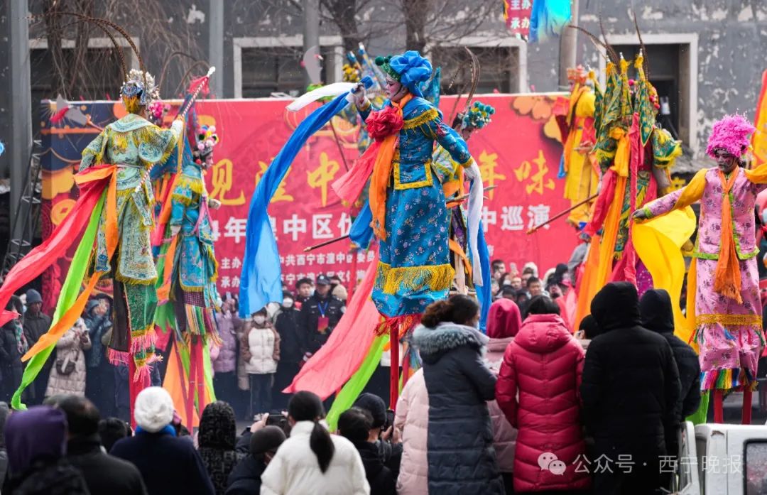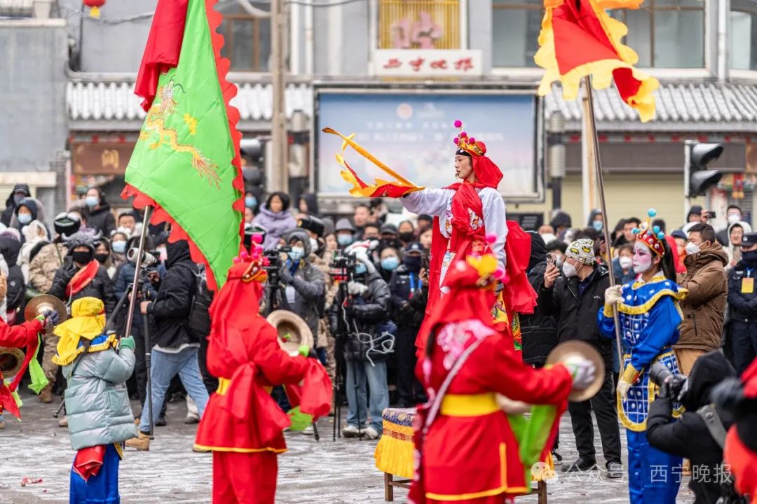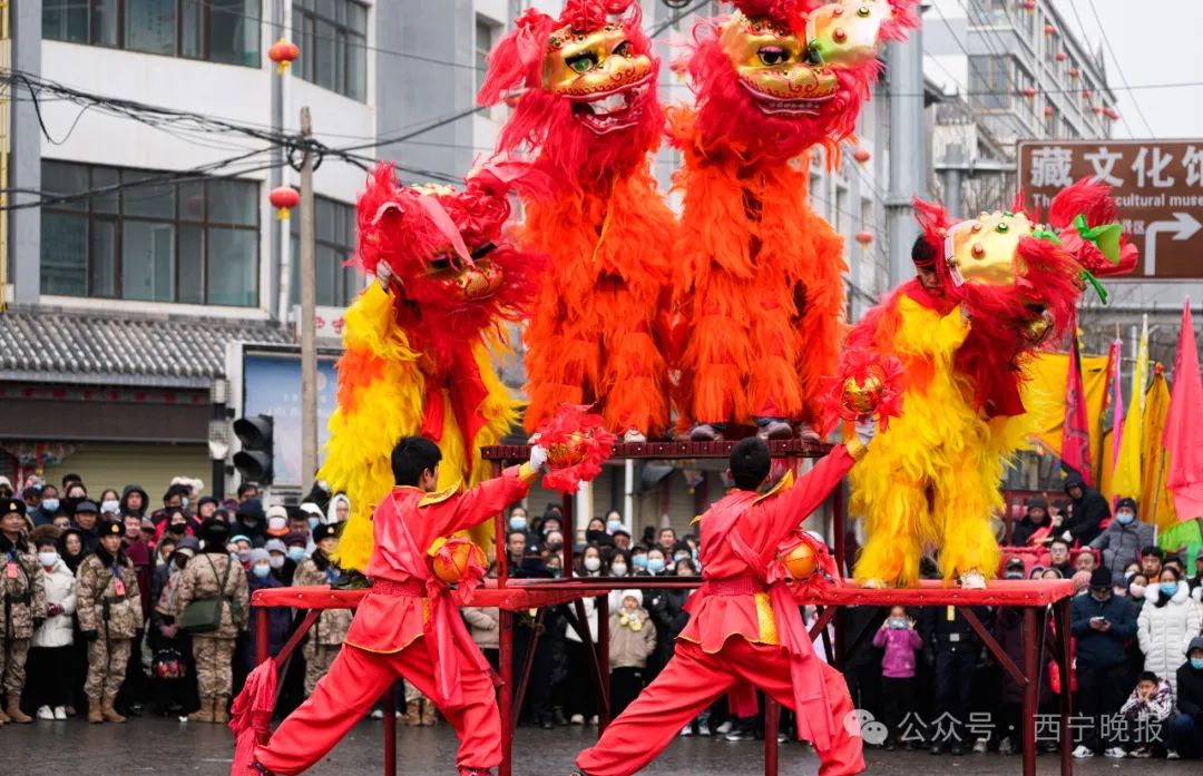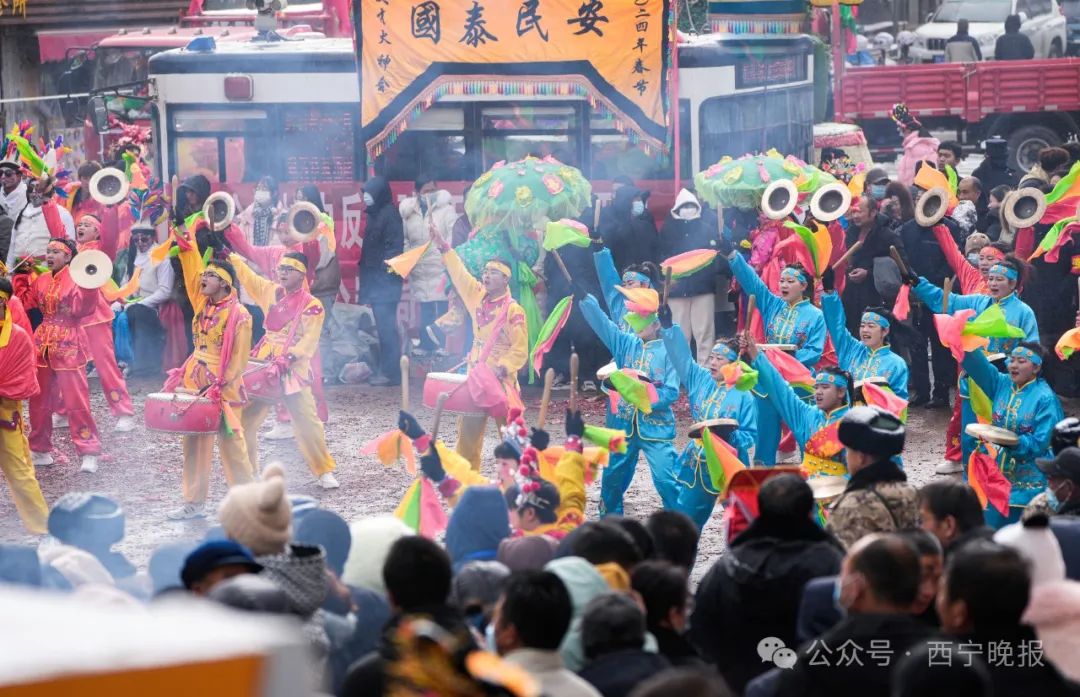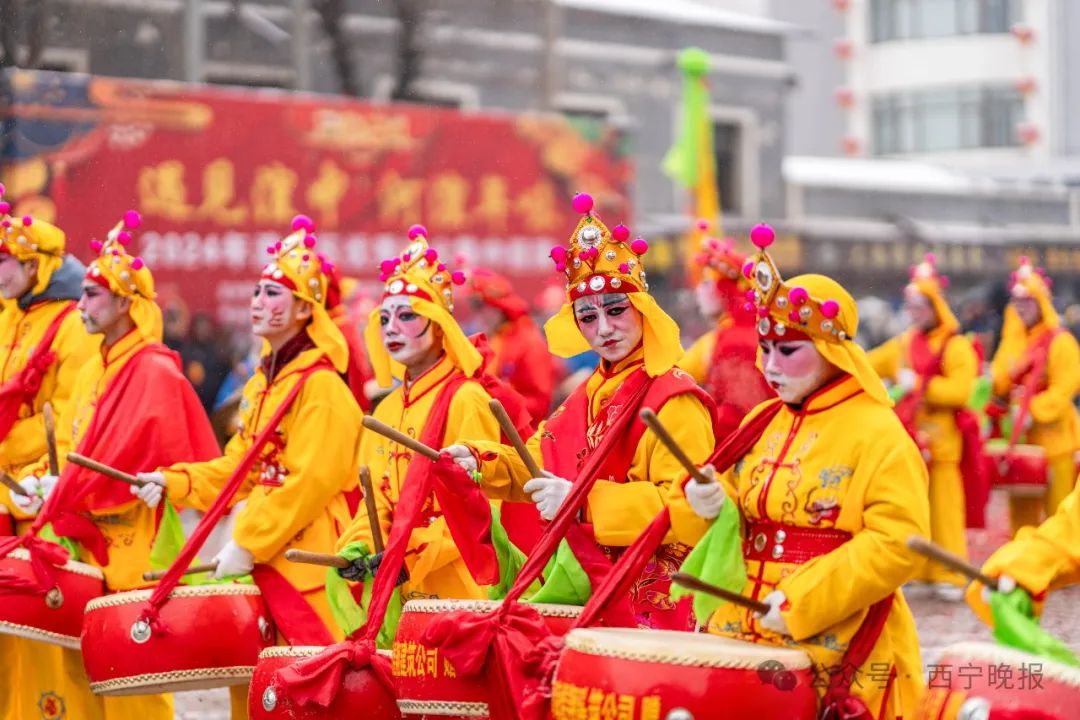 震天的锣鼓、腾飞的巨龙、威武的雄狮、喜庆的高跷……传统社火让过年的气氛铺满了大地,锣鼓震天、鞭炮齐鸣,彩旗飘扬,演员们载歌载舞中表达了群众迎新春、庆盛世的美好愿望。