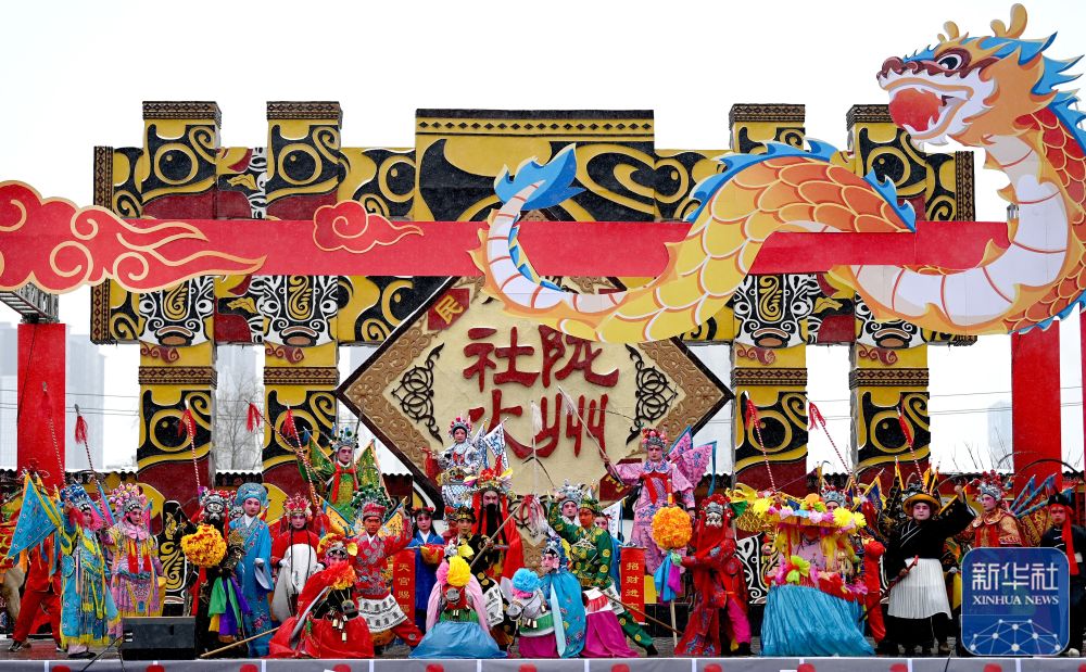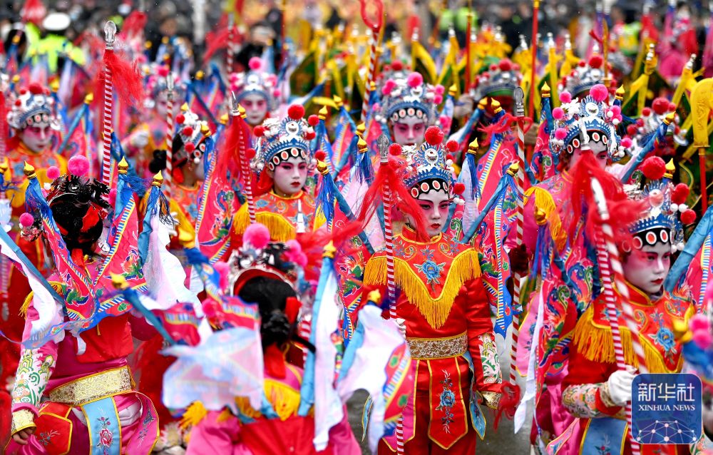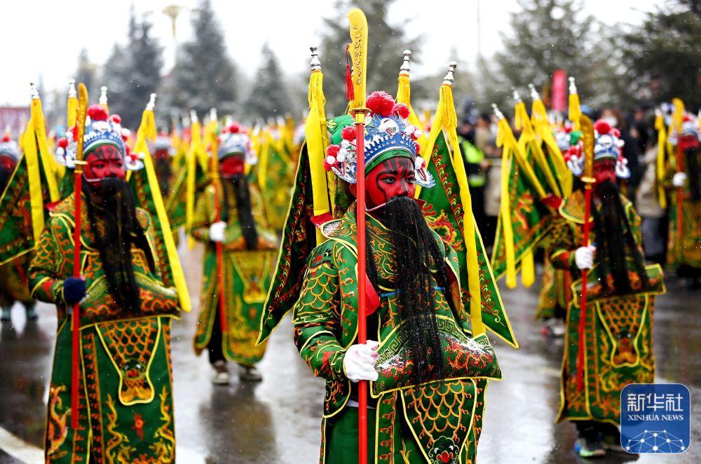 2月22日是农历正月十三,来自陕西各地市的民间社火代表队齐聚陕西陇县,进行社火展演及巡游活动。在陕西,每年春节期间人们纷纷装扮社火,走乡串户,进行拜年迎春游演。