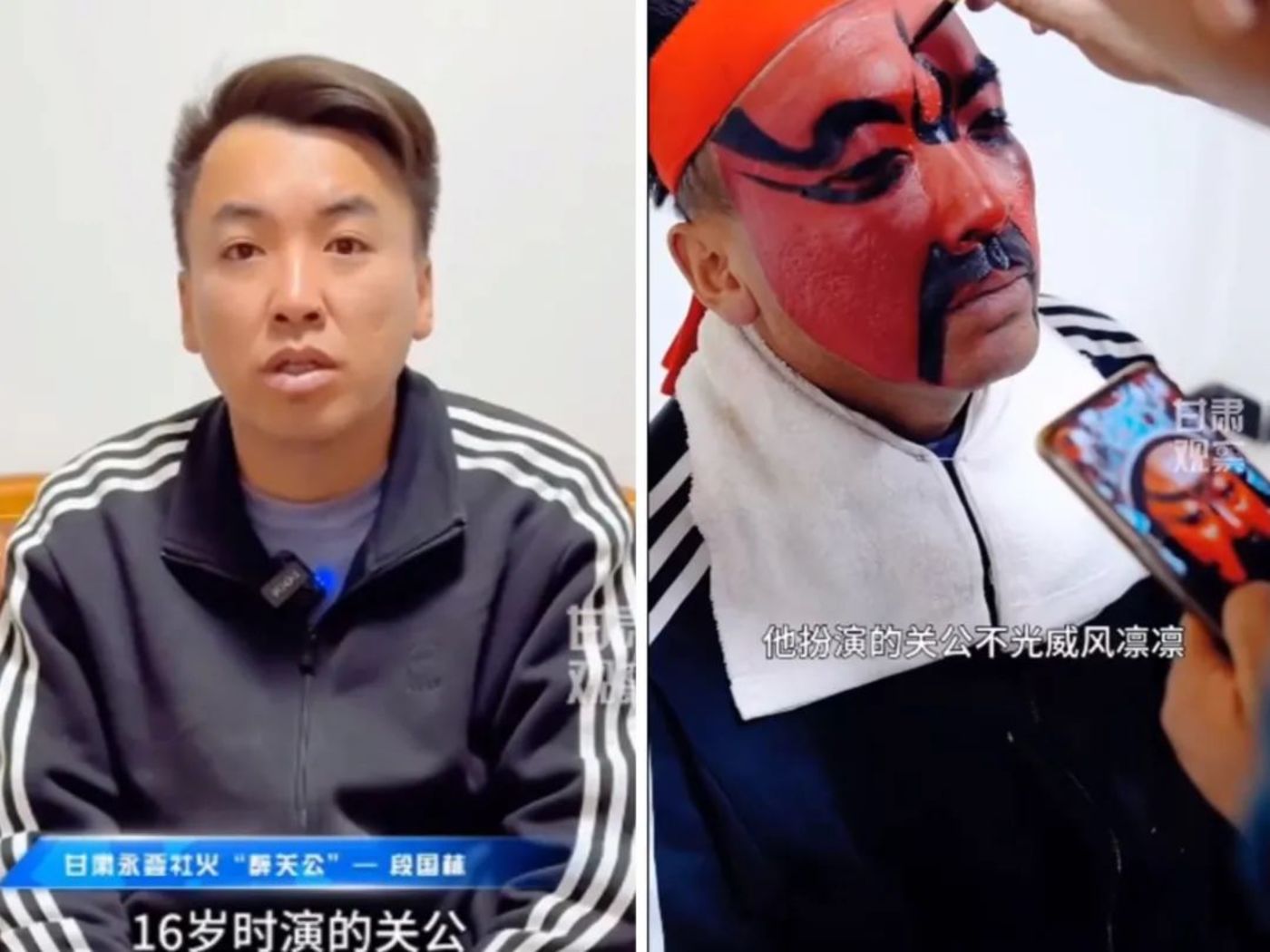 让人惊讶的是,那个在表演社火时满脸正义威严的关公,在媒体专访中却是个白净书卷气的36岁年轻人,他就是被网友亲切地称呼小林子的段国林。段国林16岁开始学习高跷,家族父兄一辈都是社火关公的扮演者,醉关公是当地特色,关公在化完妆后就不能再说话。